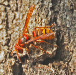 Two European Hornets eating sap leaking from a tree root, Durham, NC, 7/20/23