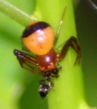 Male jumping spider (Colonus sylvanus), with prey, Durham, NC, 9/17/21 |